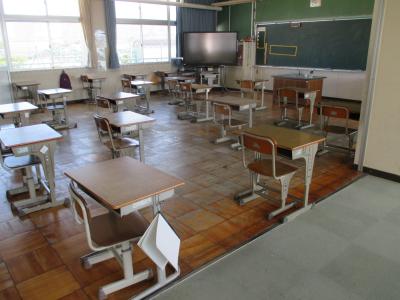 その中で、教室での児童間(椅子と椅子)の間隔を1m以上確保しました。クラスによっては、廊下の壁を収納しオープンスペースを活用しています。