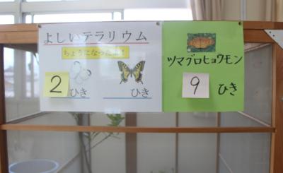 吉井テラリウムの中では、蛹化や羽化の様子を毎日見ることができます。