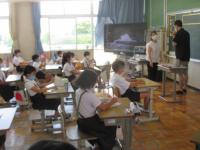 2020年7月1日 14時00分外国(英)語指導助手(ALT)、ドミニク先生にサポートしてもらいながら、英語を学ぶ授業です。対面式の活動は制限していますので、全員が前を向いての活動となります。元気な大きい声が聞こえていました。